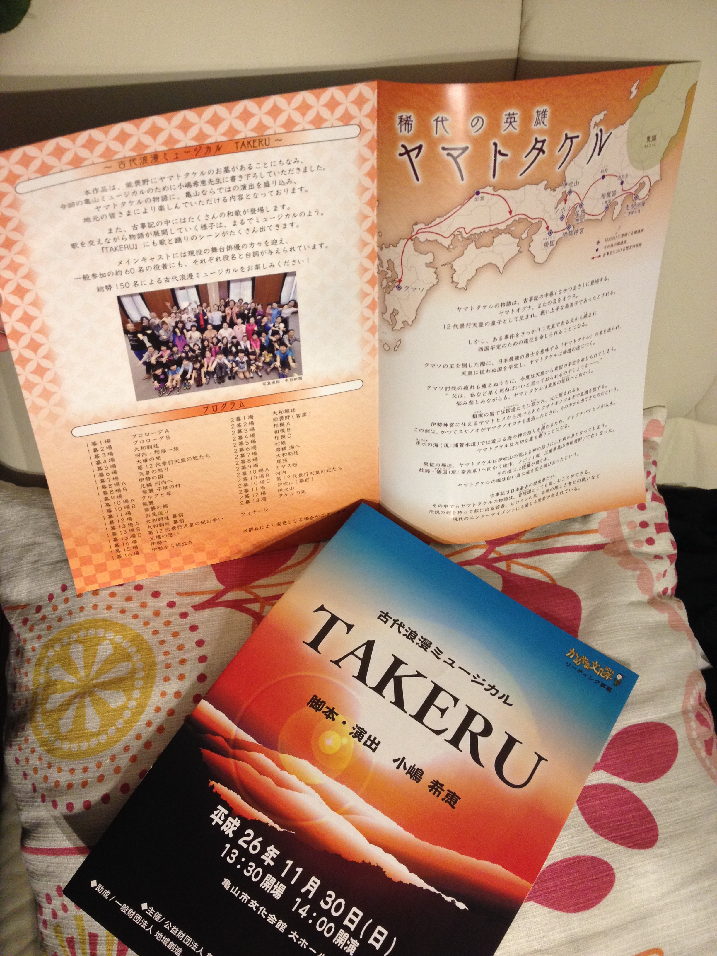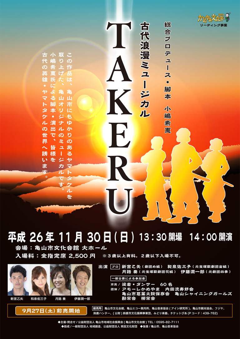 『古代浪漫ミュージカル TAKERU』は、亀山市にヤマトタケルの陵墓があることにちなんだ作品。
